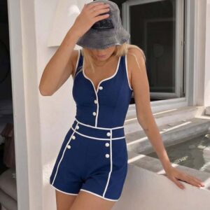 Color Block One Piece Swimsuit and Shorts