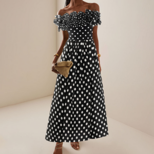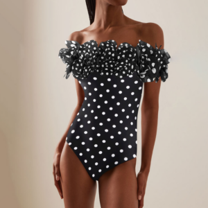 Bandeau Polka Dot Print One Piece Swimsuit and Skirt