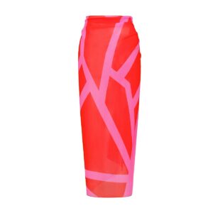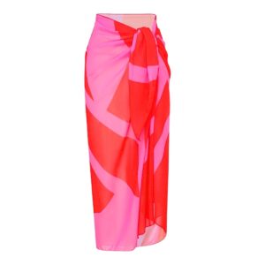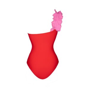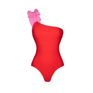 One Shoulder Color Block One Piece Swimsuit and Sarong