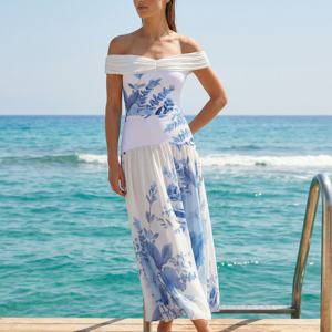 Off Shoulder Blossom Print Swimsuit Set(s)