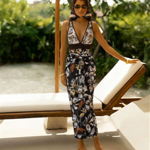 V Neck Bowknot Decor Printed Swimsuit Set(s)