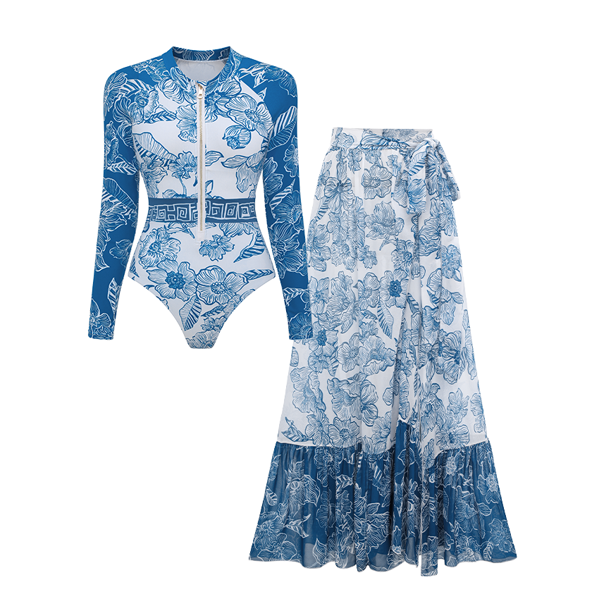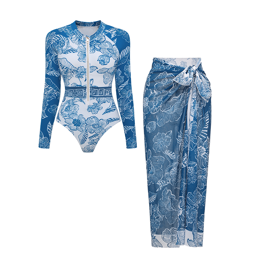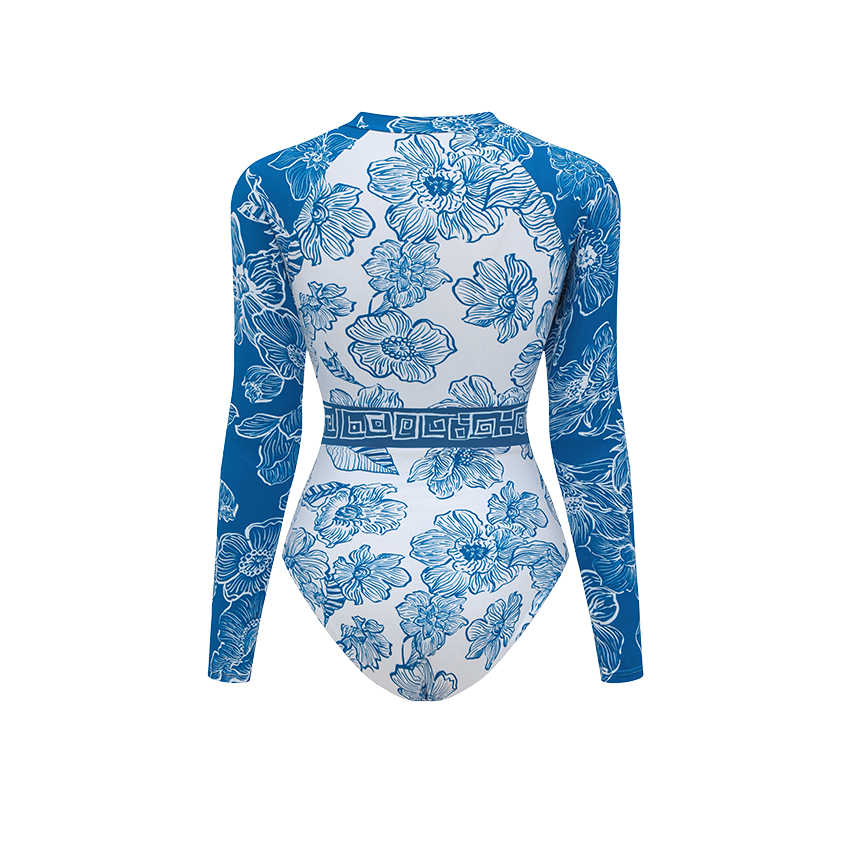 Color Block Long Sleeve Rashguard Swimsuit Set(s)