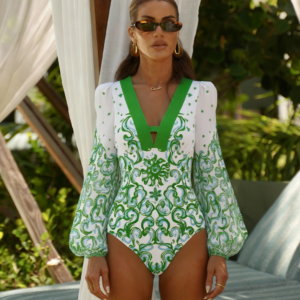 V Neck Printed Rashguard Swimsuit Set(s)