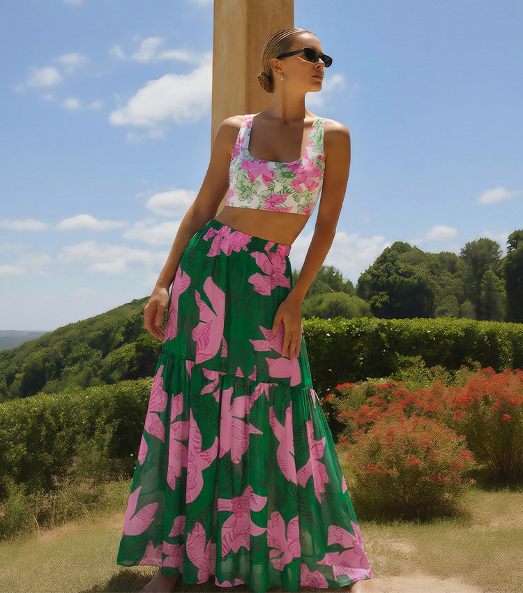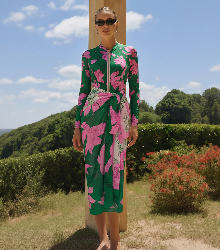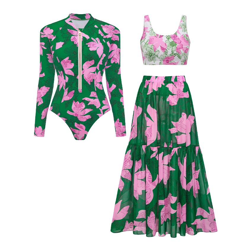 Zipper Printed Long Sleeve Rashguard Swimsuit Set(s)
