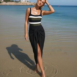 Gorgeous swimsuit! The black one piece with skirt is so elegant. I felt like a fashion model at...