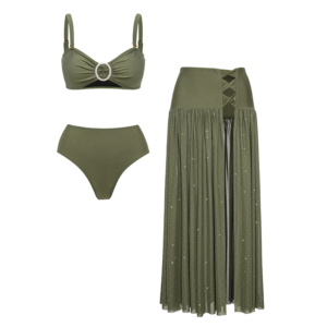 Perfect sunset beach look! This swimsuit is gorgeous. The cutout design with skirt is so elegant and the...