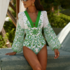 V-neck Plant-based Printing Swimsuit Set(s)