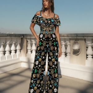 This black one piece is stunning! The 3D flowers add such a luxurious touch. I wore it at...