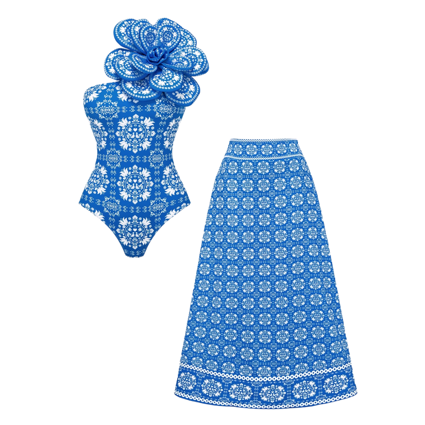 Luxury hotel pool vibes! This swimsuit is absolutely stunning. The 3D flower decor is so intricate and beautiful....