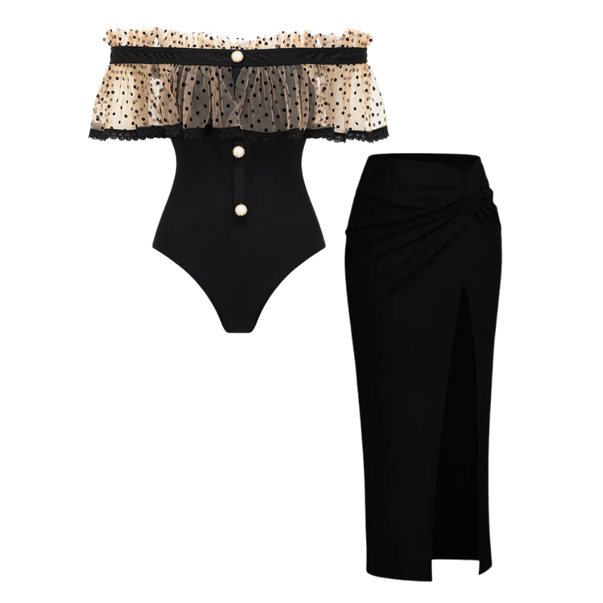 Gorgeous swimsuit! The black one piece with skirt is so elegant. I felt like a fashion model at...