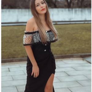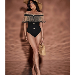 This black one piece is stunning! The 3D flowers add such a luxurious touch. I wore it at...