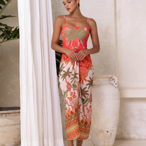 Off Shoulder Coconut Palm Print One Piece Swimsuit With Belt and Skirt