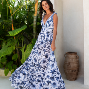 V Neck Lace Up Printed One Piece Swimsuit and Skirt