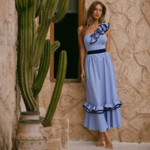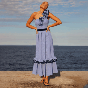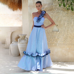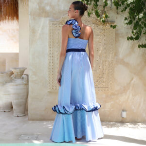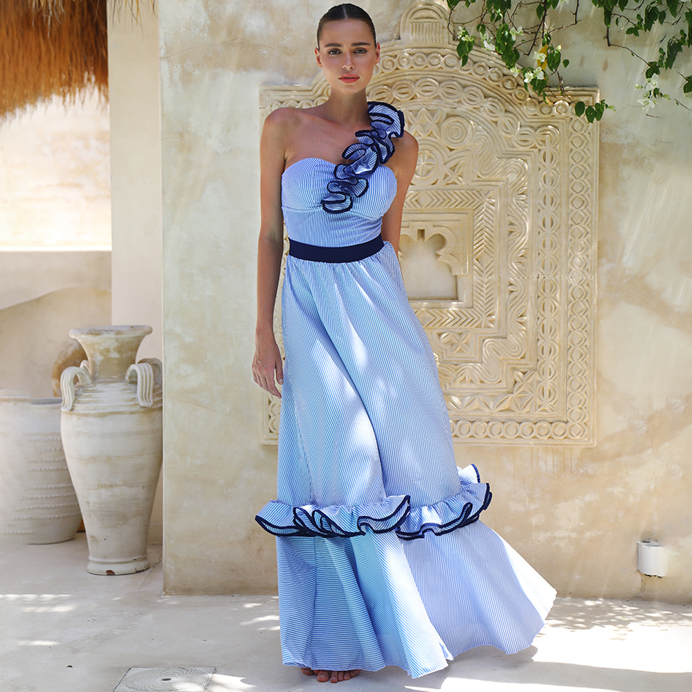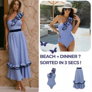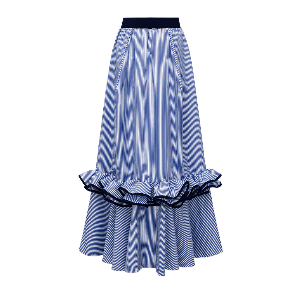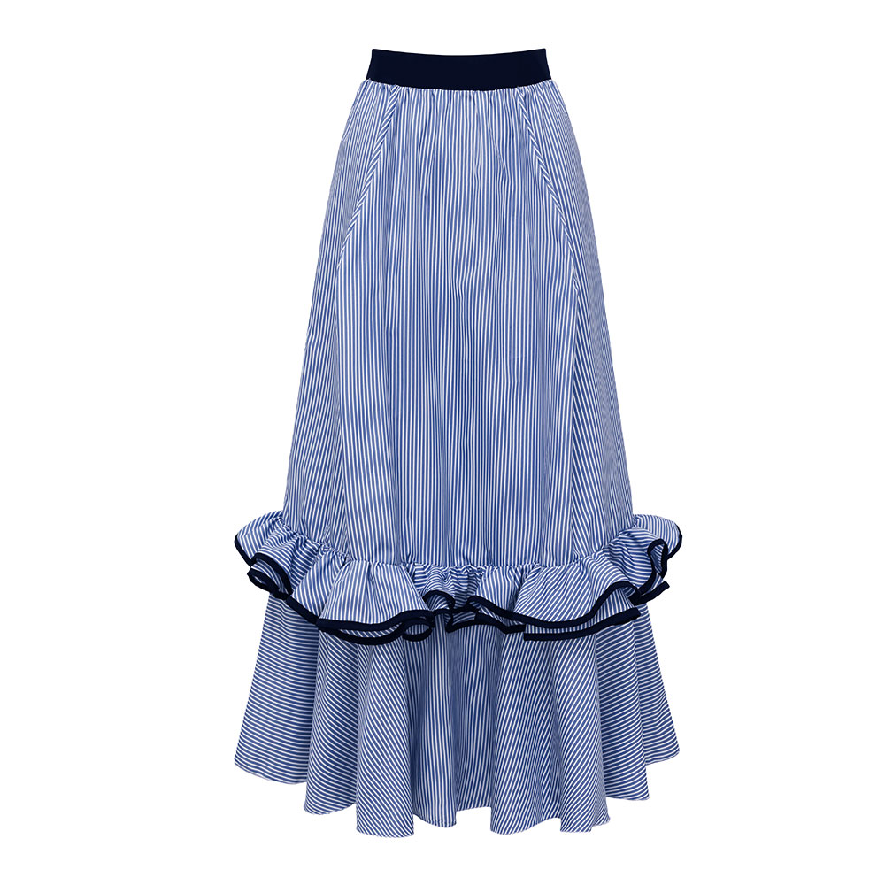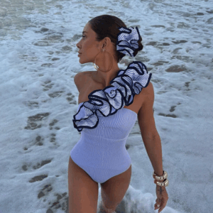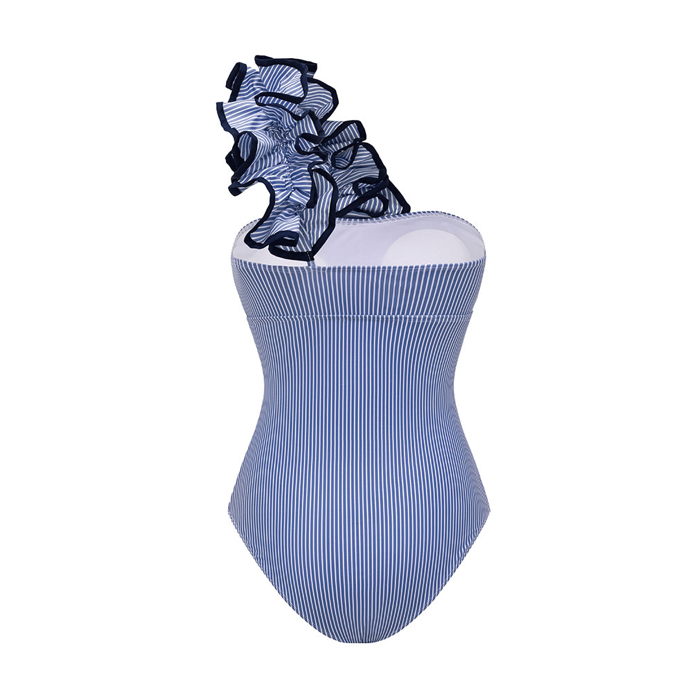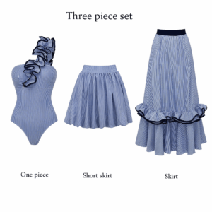 One Shoulder Ruffle Stripe Print One Piece Swimsuit and Skirt