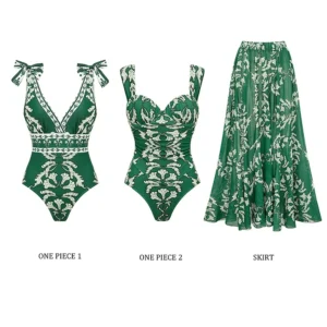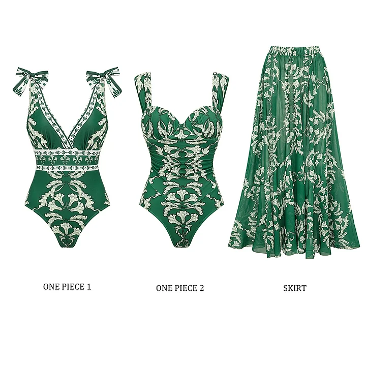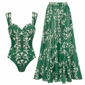 Sling Underwired Shirring Printed One Piece Swimsuit and Skirt