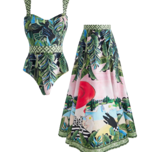 Sling Printed One Piece Swimsuit and Skirt
