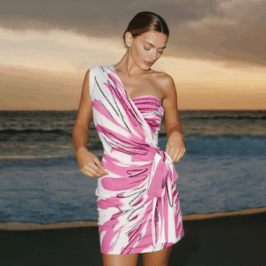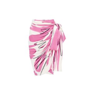 One Shoulder Printed Frilled One Piece Swimsuit and Skirt