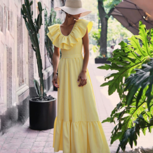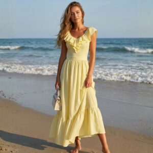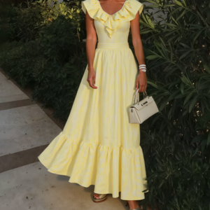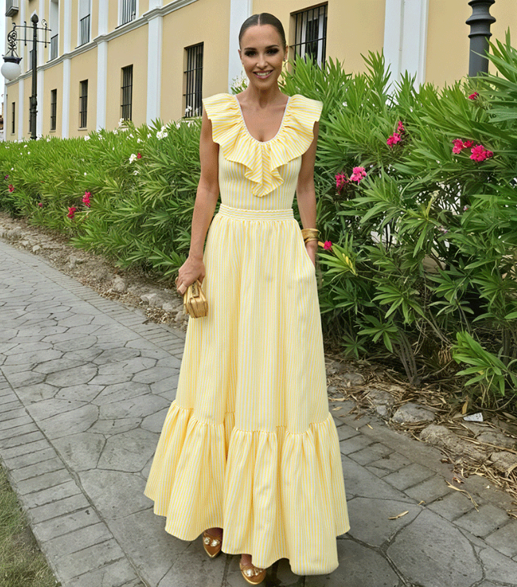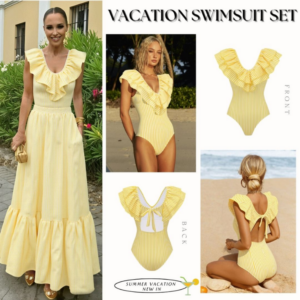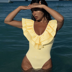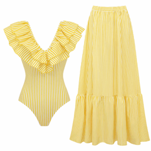 V Neck Ruffle Striped Print One Piece Swimsuit and Skirt