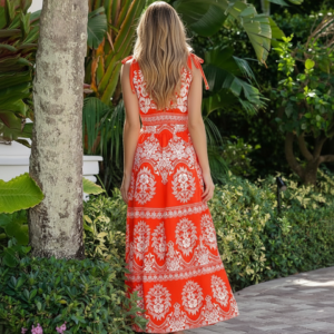 V Neck Bow-detailed Red Printed Swimsuit Set(s)