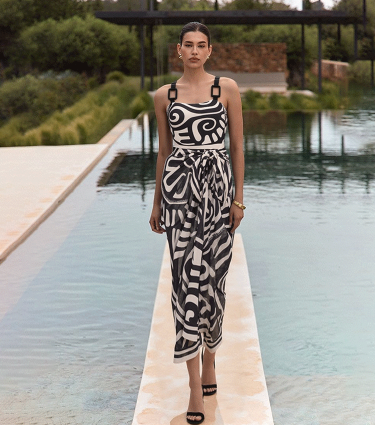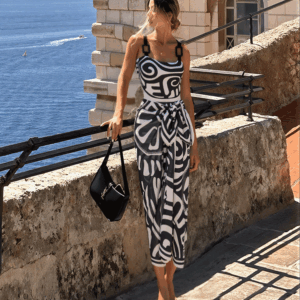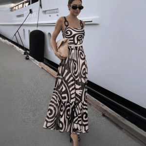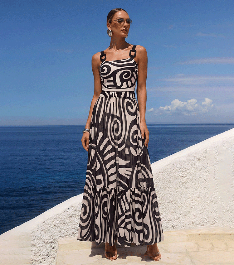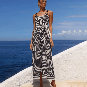 Adjustable Shoulder Straps Black Tribal Print Swimsuit Set(s)