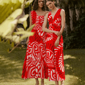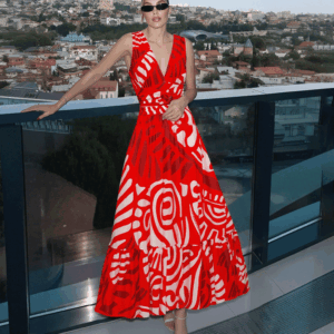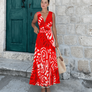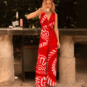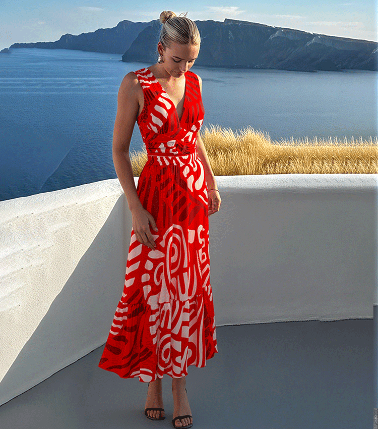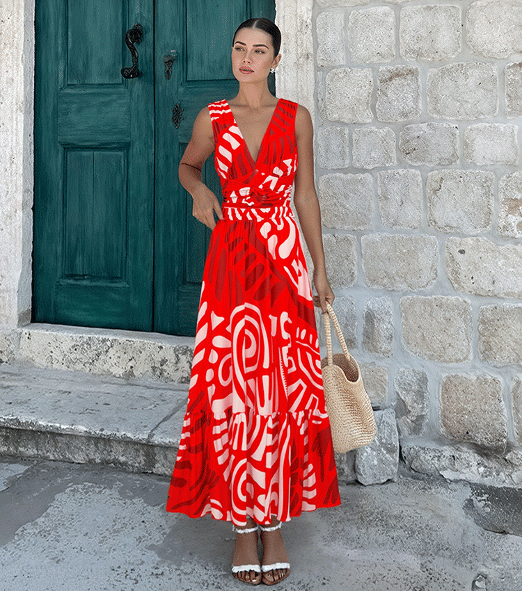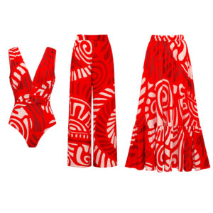 V Neck Red Ring Decorate Printed Swimsuit Set(s)