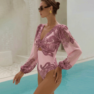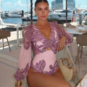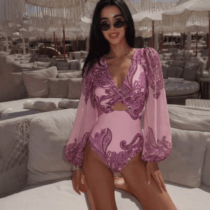 Luxury hotel pool vibes! This swimsuit is absolutely stunning. The 3D flower decor is so intricate and beautiful....