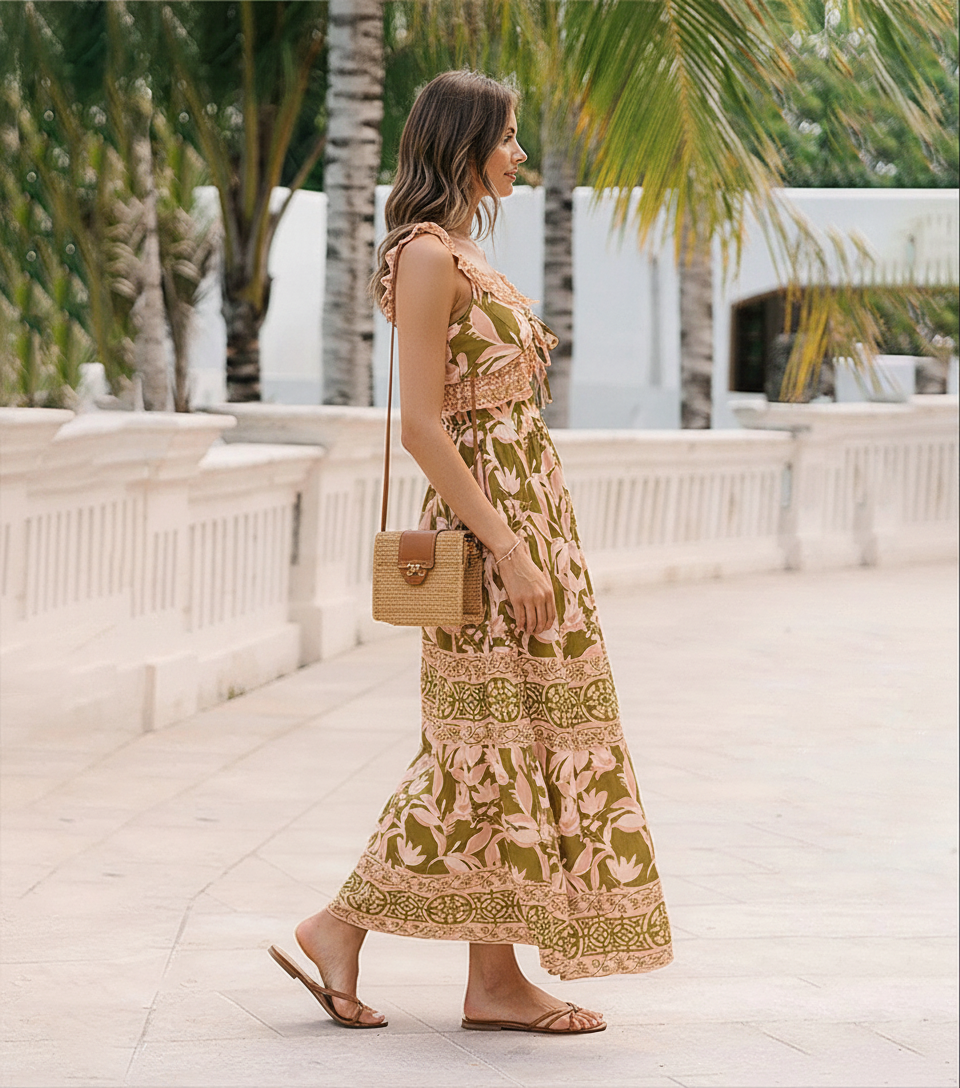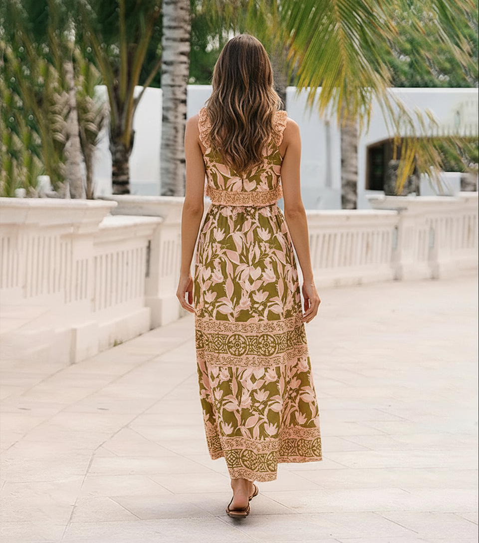 Ruffle Lace Up Cut Out Printed Swimsuit Set(s)