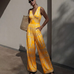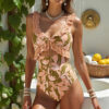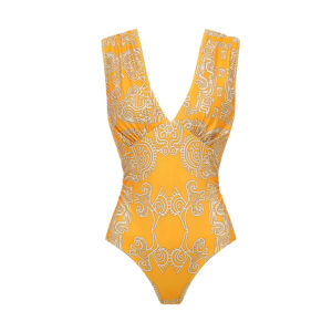 V Neck Yellow Tribal Style Print Swimsuit Set(s)