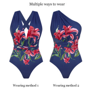 V Neck Iris Print Various Ways To Wear Swimsuit Set(s)