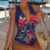 Adjustable Shoulder Straps Blue Print Swimsuit Set(s)