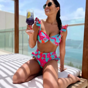 Perfect beach look! The flower bikini is so cute and the high waist design is very flattering. Wore...