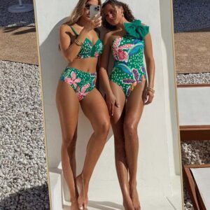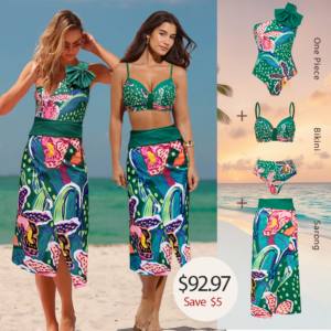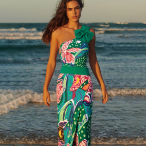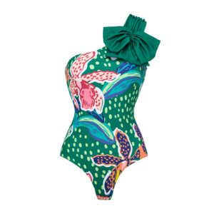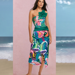 Tropic Printed One Shoulder One Piece Swimsuit and Sarong Flaxmaker