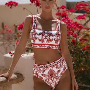 Perfect beach look! The flower bikini is so cute and the high waist design is very flattering. Wore...