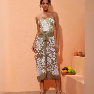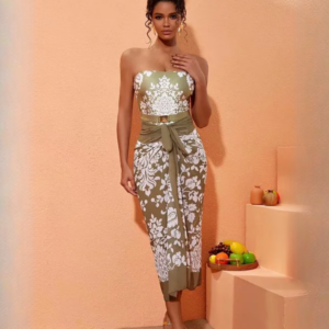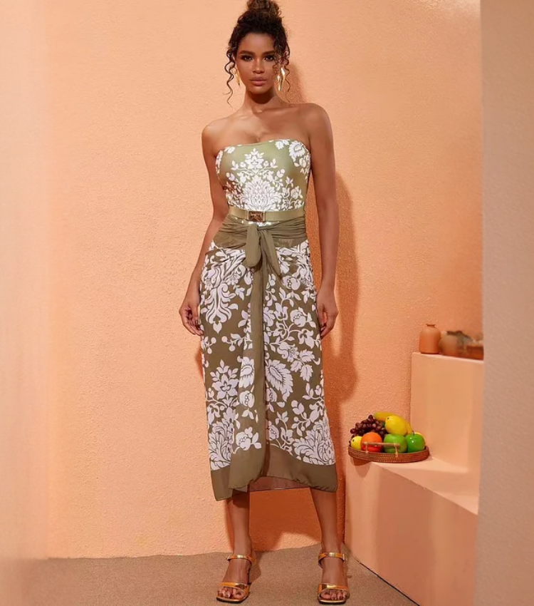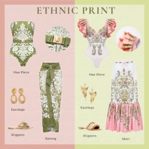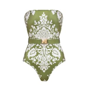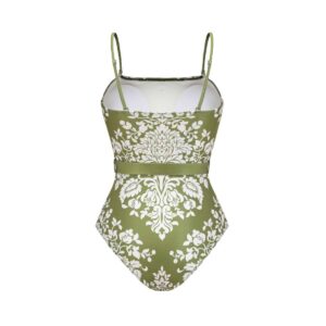 Retro Print Removable Belt Detail Sling One Piece Swimsuit and Sarong Flaxmaker