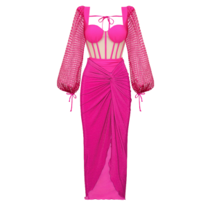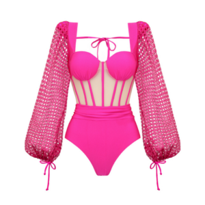 Mesh Hollow Long-sleeved Net Yarn Splicing One Piece Swimsuit and Sarong