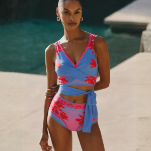 Perfect beach look! The flower bikini is so cute and the high waist design is very flattering. Wore...
