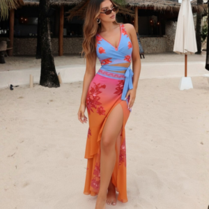 Perfect sunset beach look! This swimsuit is gorgeous. The cutout design with skirt is so elegant and the...