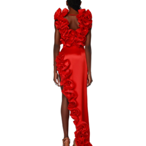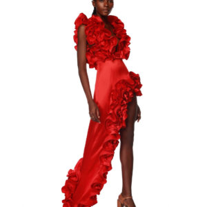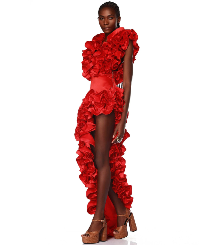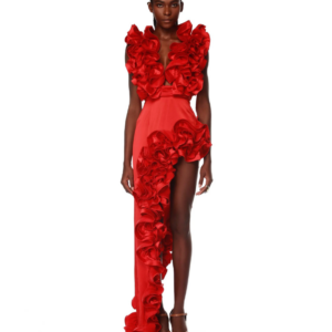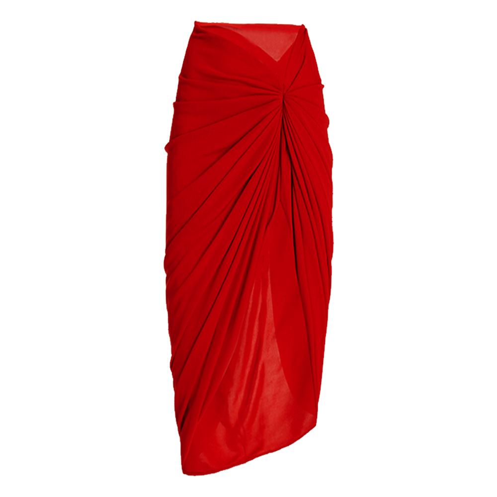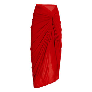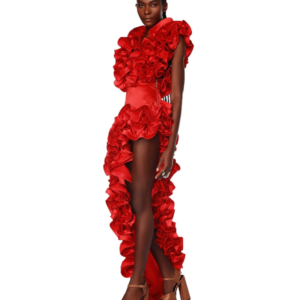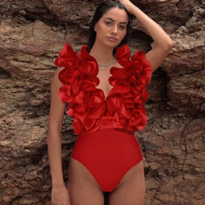 Frilled V Neck Red One Piece Swimsuit and Skirt Flaxmaker