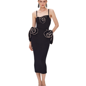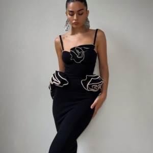 This black one piece is stunning! The 3D flowers add such a luxurious touch. I wore it at...