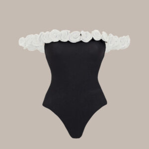This black one piece is stunning! The 3D flowers add such a luxurious touch. I wore it at...