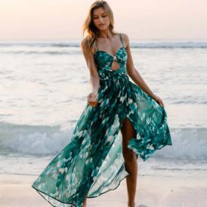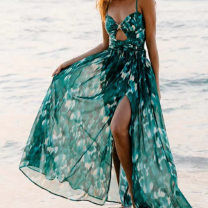Ruched Cutout Green One Piece Swimsuit and Skirt Flaxmaker