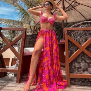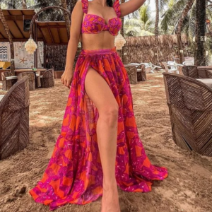 Perfect beach look! The flower bikini is so cute and the high waist design is very flattering. Wore...