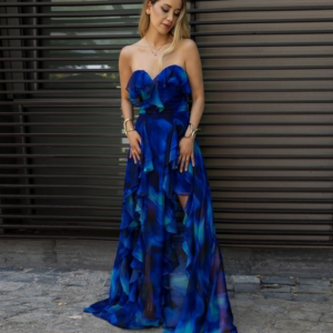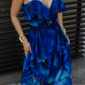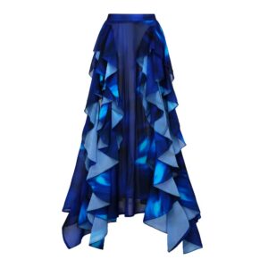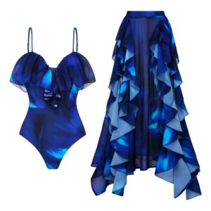Blue Blooming Ruffle One Piece Swimsuit and Skirt