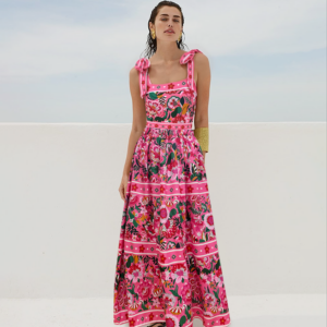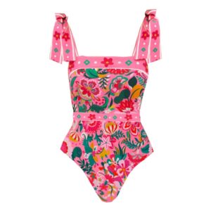 Pink Floral Paradise Print One Piece Swimsuit and Skirt