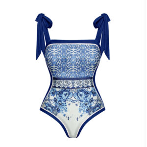 Blue and White Porcelain One Piece Swimsuit and Skirt