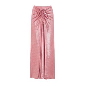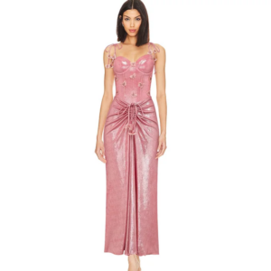 Pink Shiny Embroidered Butterfly One Piece Swimsuit and Split Skirt