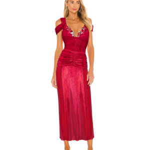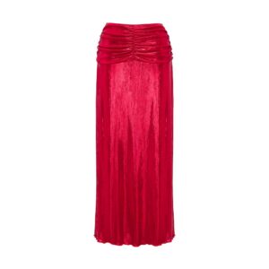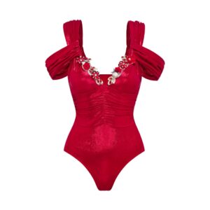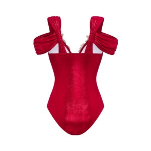 Red Shiny Embroidery Decoration One Piece Swimsuit and Skirt