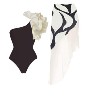 Ruffle One Shoulder One Piece Swimsuit and Skirt Flaxmaker