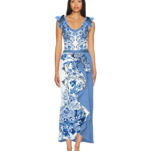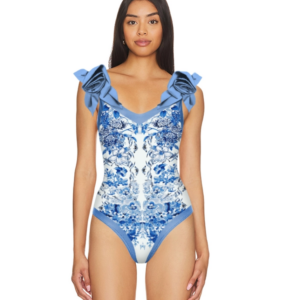 3D Flower Maiolica Print One Piece Swimsuit and Skirt Flaxmaker