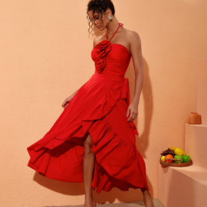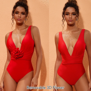 Halter 3D Flower One Piece Swimsuit and Skirt Flaxmaker
